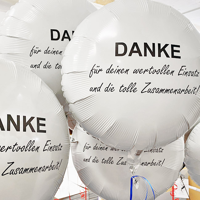 So ist ein direktes Ansprechen bzw. ein direkter Kontakt mit dem Empfänger möglich. Auf Wunsch drucken wir Ihnen die persönliche Nachricht auch direkt auf den Ballon.